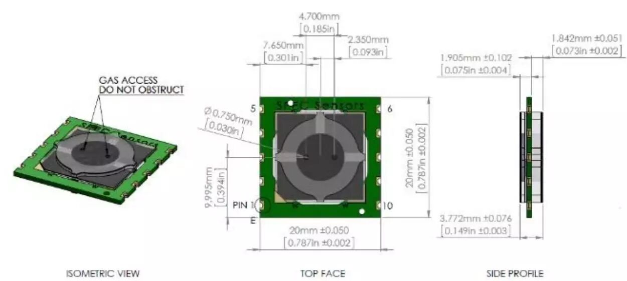 所有传感器设计是在大气检测 1atm +/-0.2大气压制成的.因为使用的场景和器件执行是超出我们控制的, SPEC Sensors不能在一个指定的产品和应用中保证性能,继而拒绝任何的和所有的责任.客户应该在其自身条件下测试,来确保传感器适合其要求.